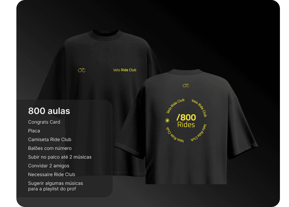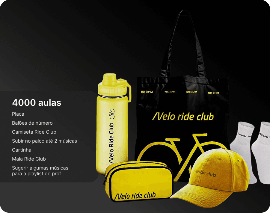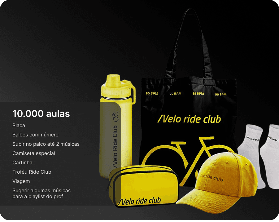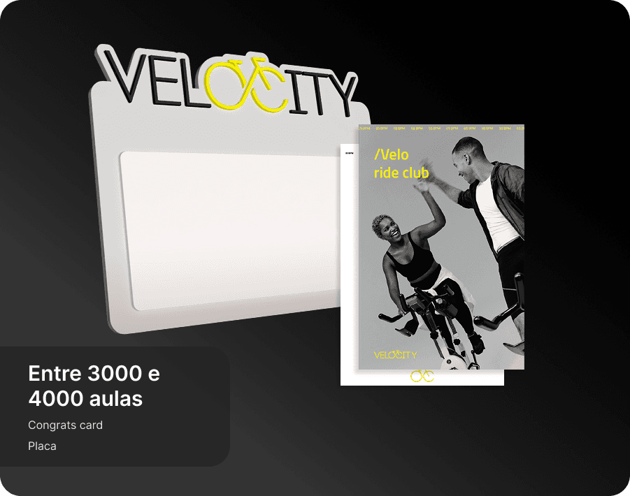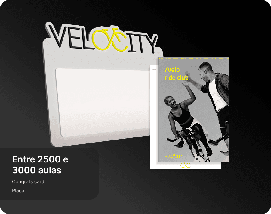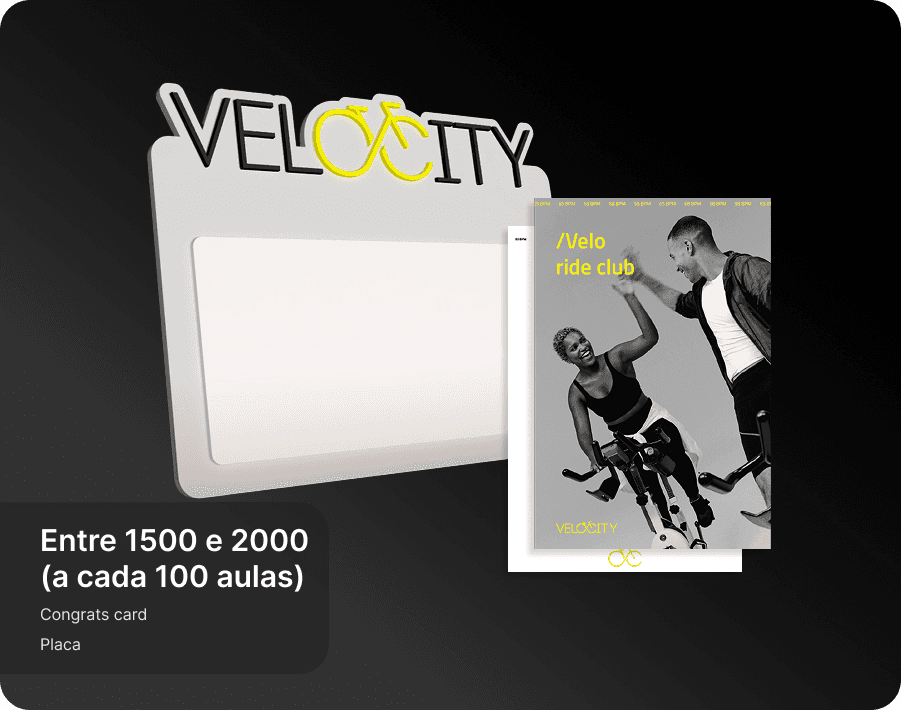 Eles são complementares e pensados para momentos diferentes da sua jornada. O Programa de Fidelidade é funcional e de curto prazo: você acumula pontos a cada check-in e troca por recompensas tangíveis, como produtos e aulas bônus. O Velo ride club é de longo prazo: celebramos seus grandes marcos de aulas com itens simbólicos, experiências únicas e reconhecimento público.